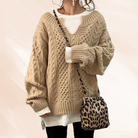 Le pull en maille Camille combine parfaitement confort et style avec son design en tricot à câbles et sa coupe relaxée. Sa texture chaleureuse en fait un choix idéal pour les journées fraîches, tout en apportant une touche de sophistication à votre tenue décontractée.