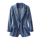 Ce blazer en denim pour femmes allie confort et élégance. Avec sa coupe ajustée et son col à revers intelligent, il confère une allure moderne et professionnelle tout en offrant une excellente durabilité. Son bouton unique permet un ajustement facile, parfait pour un look à la fois décontracté et sophistiqué.