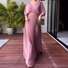 Women's Pleated V-Neck Maxi Dress