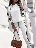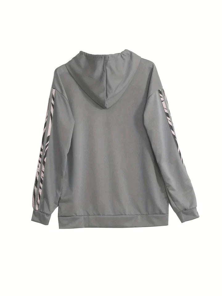 This women's striped two-piece set combines casual elegance with absolute comfort. The hoodie and matching pants offer a loose fit, ideal for a casual and comfortable outfit. Perfect for your relaxed days or informal outings.