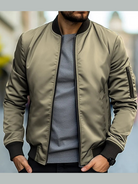 This men's bomber jacket is the perfect combination of warmth, style, and casual sophistication. Featuring a zip-up closure and a solid design, it offers versatility for any occasion. Whether it's for a night out or a casual evening, this jacket combines comfort with a stylish look.